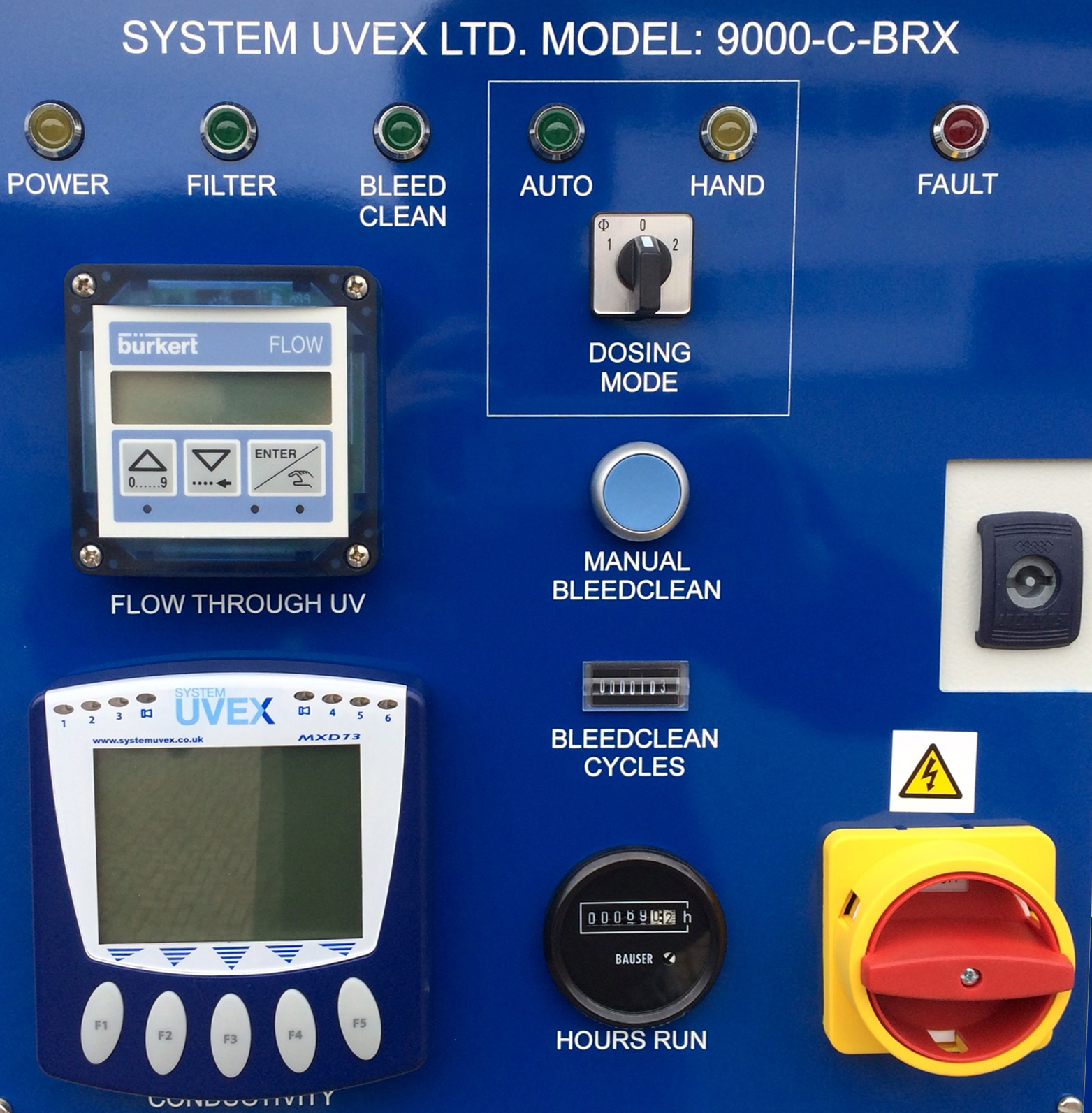 Information on system operation together with the condition of the water such as flow through the UV, UV intensity, water conductivity (for blow down), and redox are continually monitored and processed by the UVEX PLC, enabling aspects of tower water control to be adjusted to meet the changing demands of the building which the system is serving so ensuring effective and reliable operation.